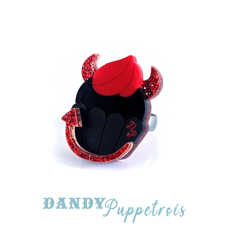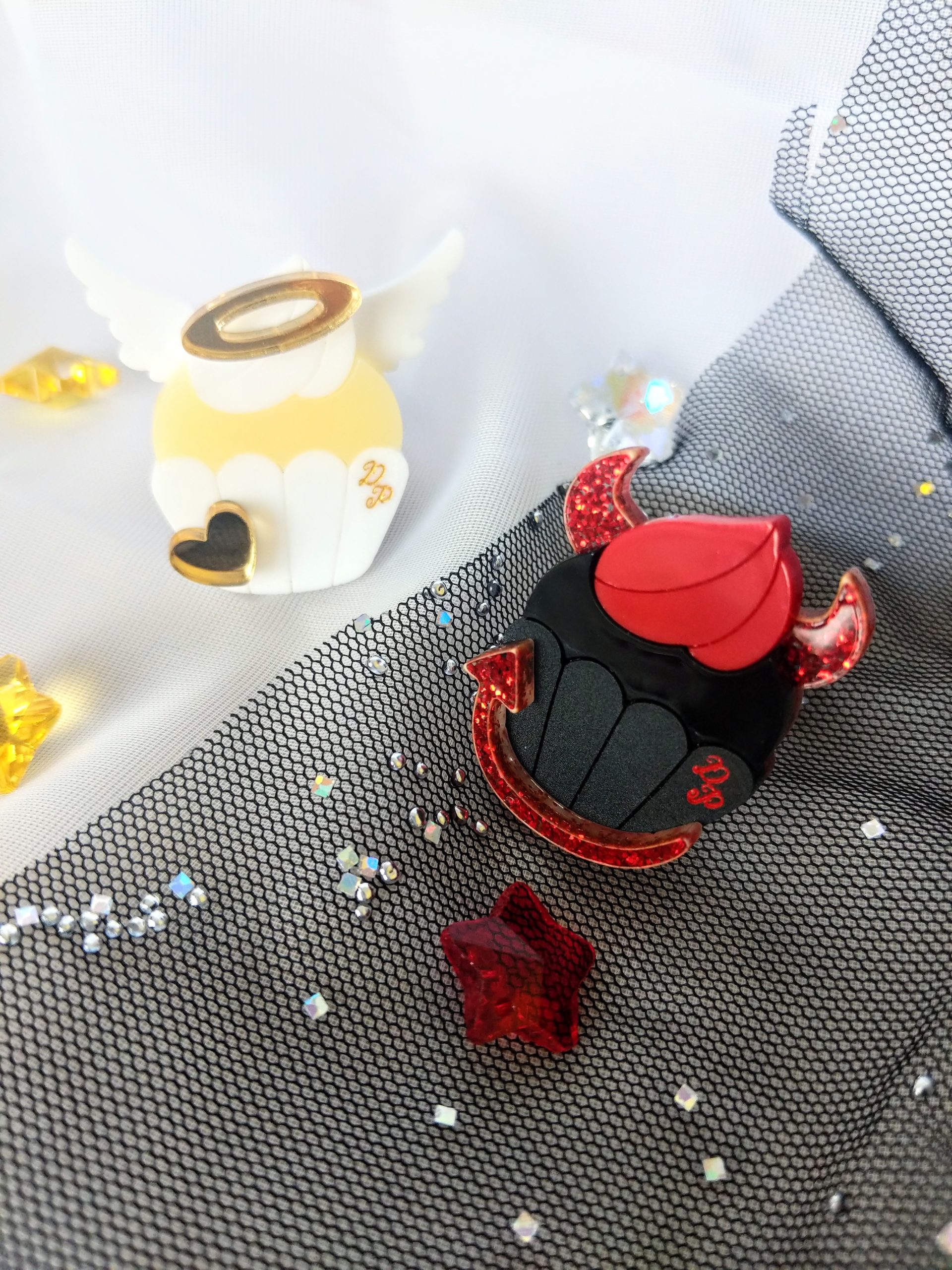 The Otherworldly Desserts collection is inspired by silly puns and a dessert theme that doesn’t show up quite often enough in Lolita jewelry. This collection features two ring designs: Angel & Devil variants.