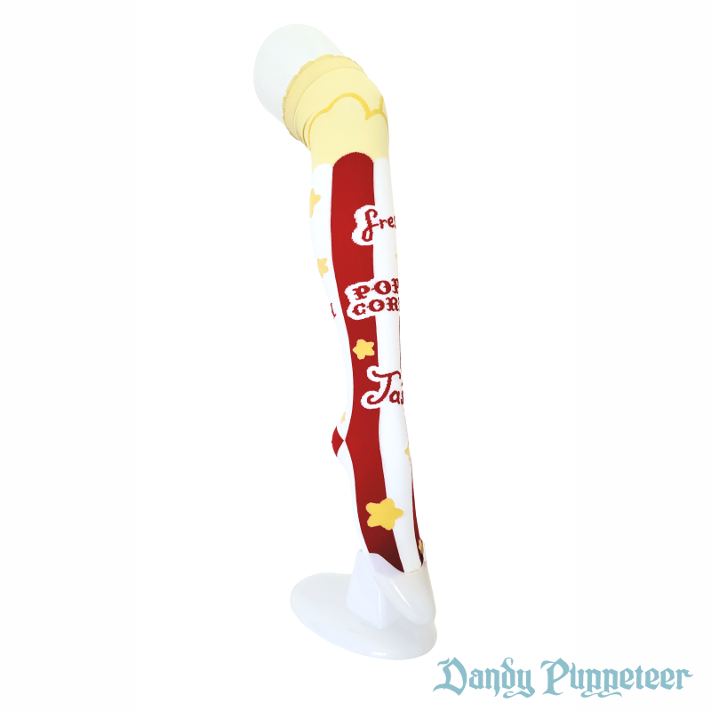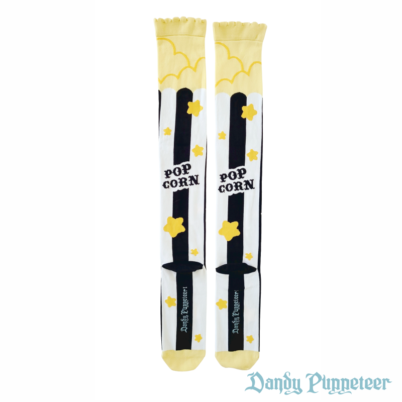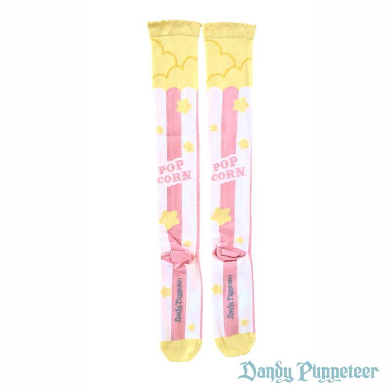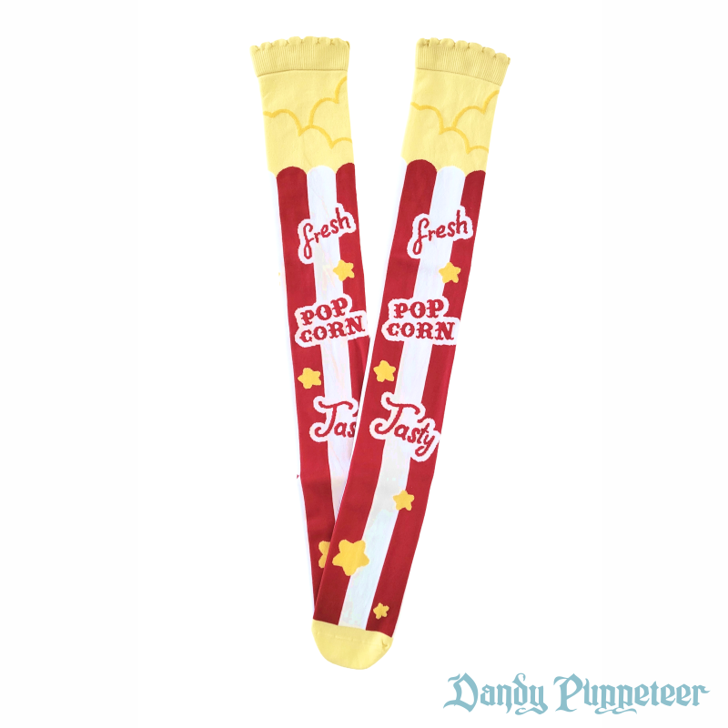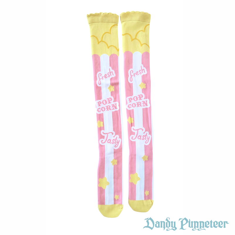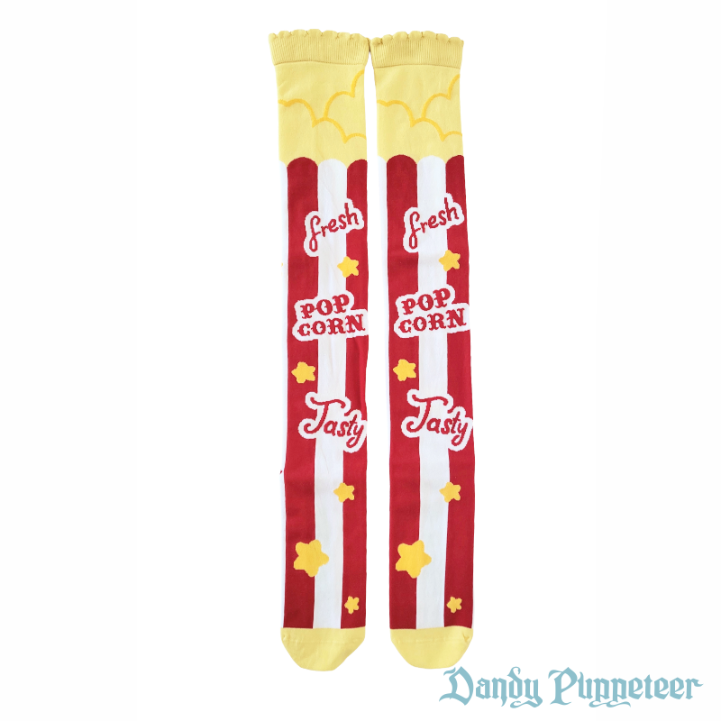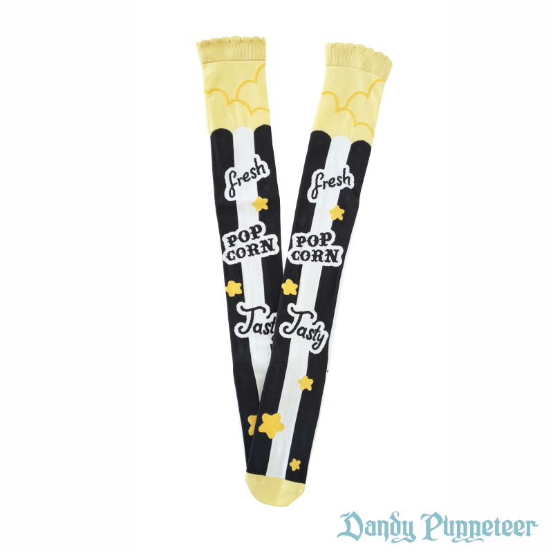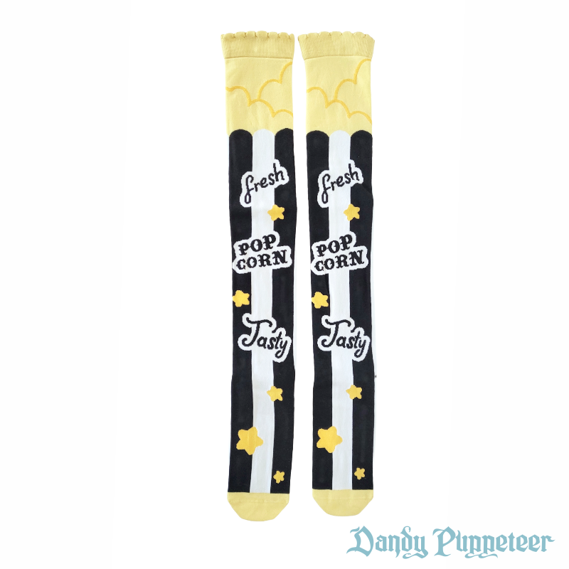 The Fresh Tasty Popcorn Over Knee Socks resemble popcorn buckets and popcorn, perfect for a movie night!