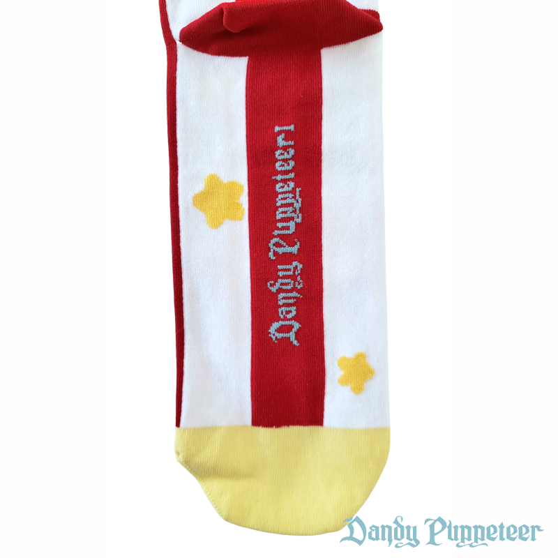 Dandy Puppeteer logo & sock size is woven on the bottom of the socks.