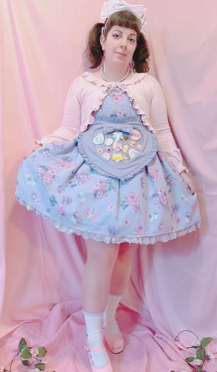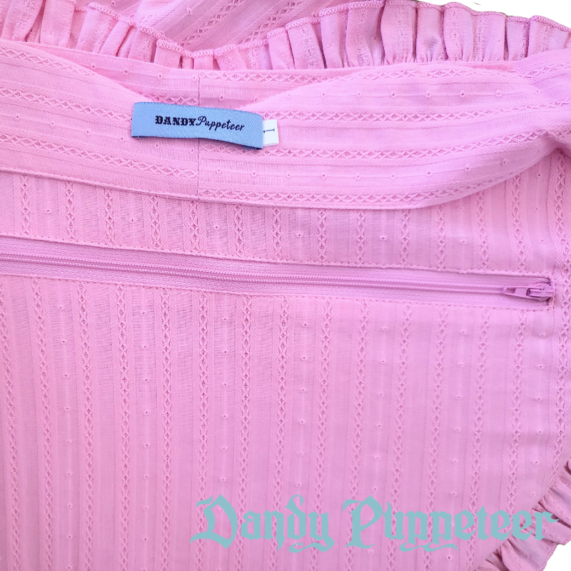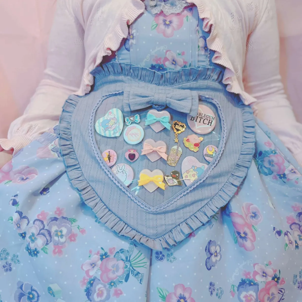 It’s made of 100% cotton jacquard fabric with a cute diamond and striped texture. It has ruffles and decorative bows on the front and heart-shaped waist-ties.