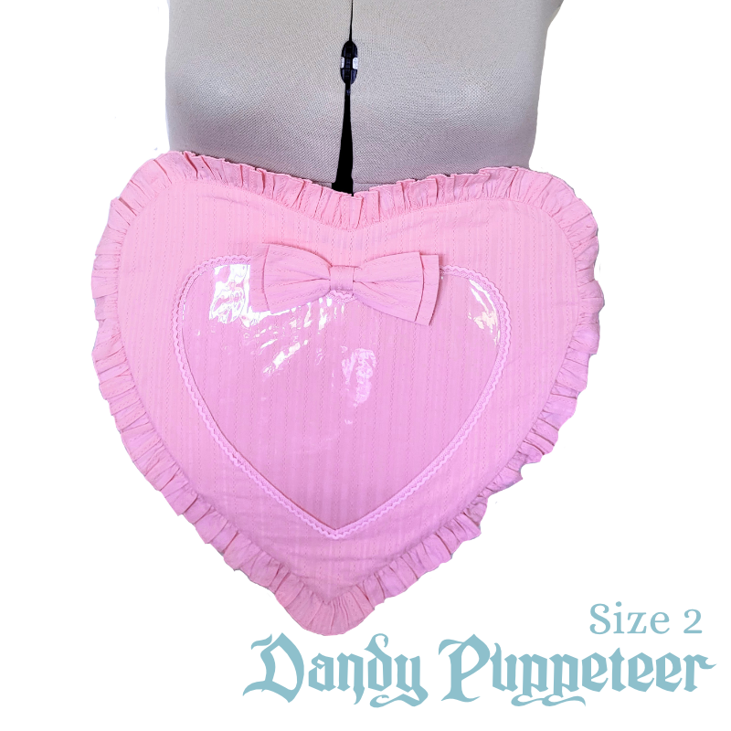 For Size 2, the apron has a 12.5in x 10in heart window and measures 120 inch total length. Best recommended for waists above 40 inches. Mannequin model is set at 40 inch waist.