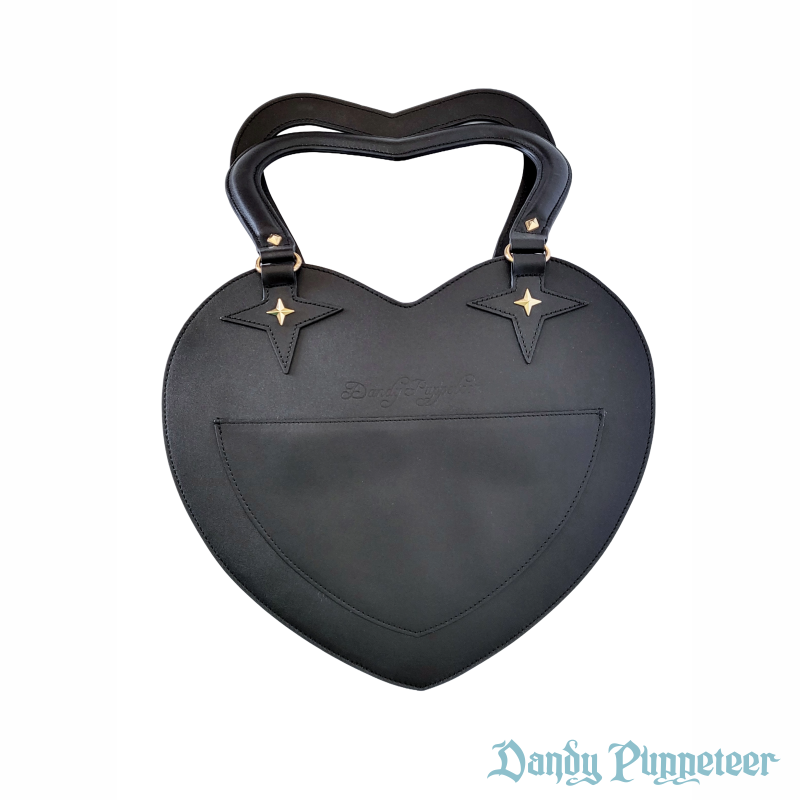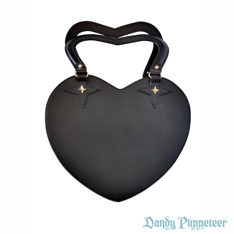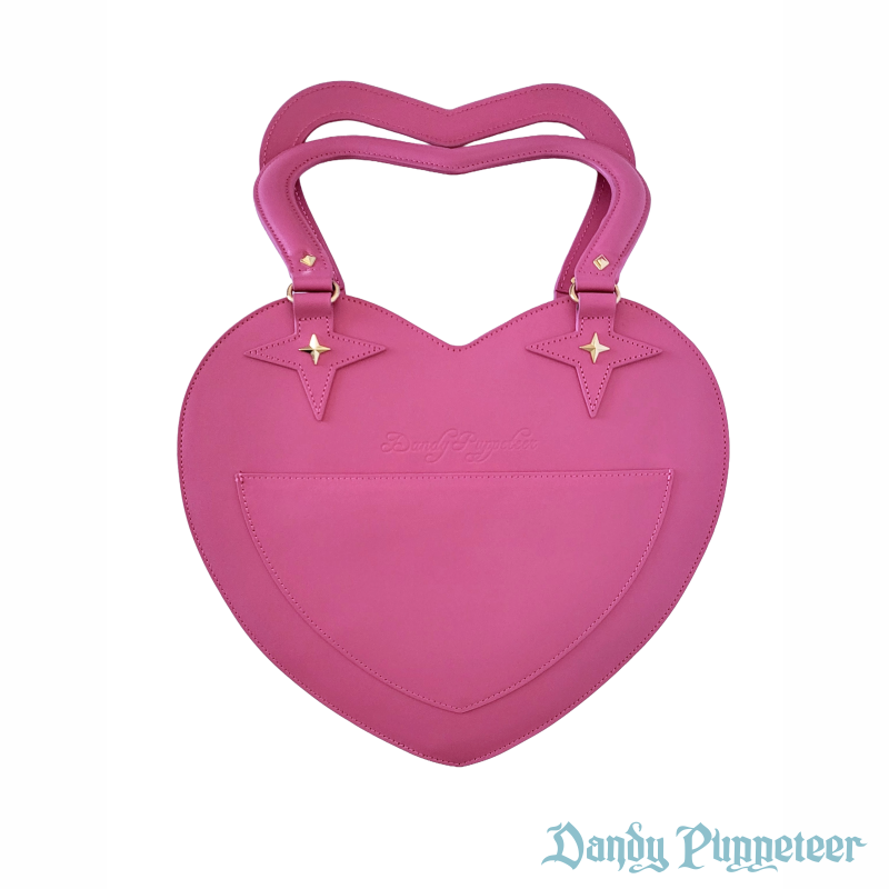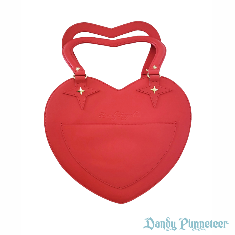The Showtime Heart Bag is 14 inches by 13 inches in size with a 6.5 inch heart shaped handle and a 4 inch depth.
