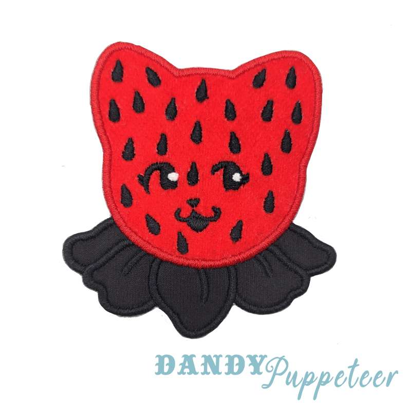 The Strawberry Meow Brooch roughly measures 3in x 3in.